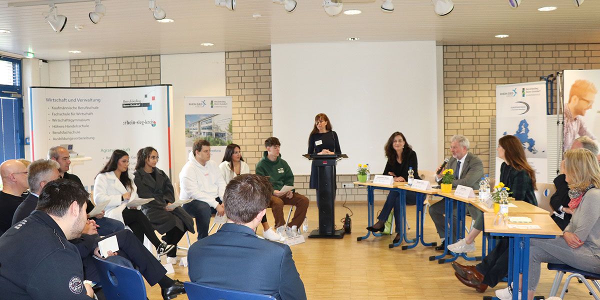 „Europa stärken – Demokratie stärken: Europawahl 2024 – geh wählen für Dein Europa!“ lautete das Motto des diesjährigen Europatags am 6. Mai 2024 am Berufskolleg Bonn-Duisdorf des Rhein-Sieg-Kreises.