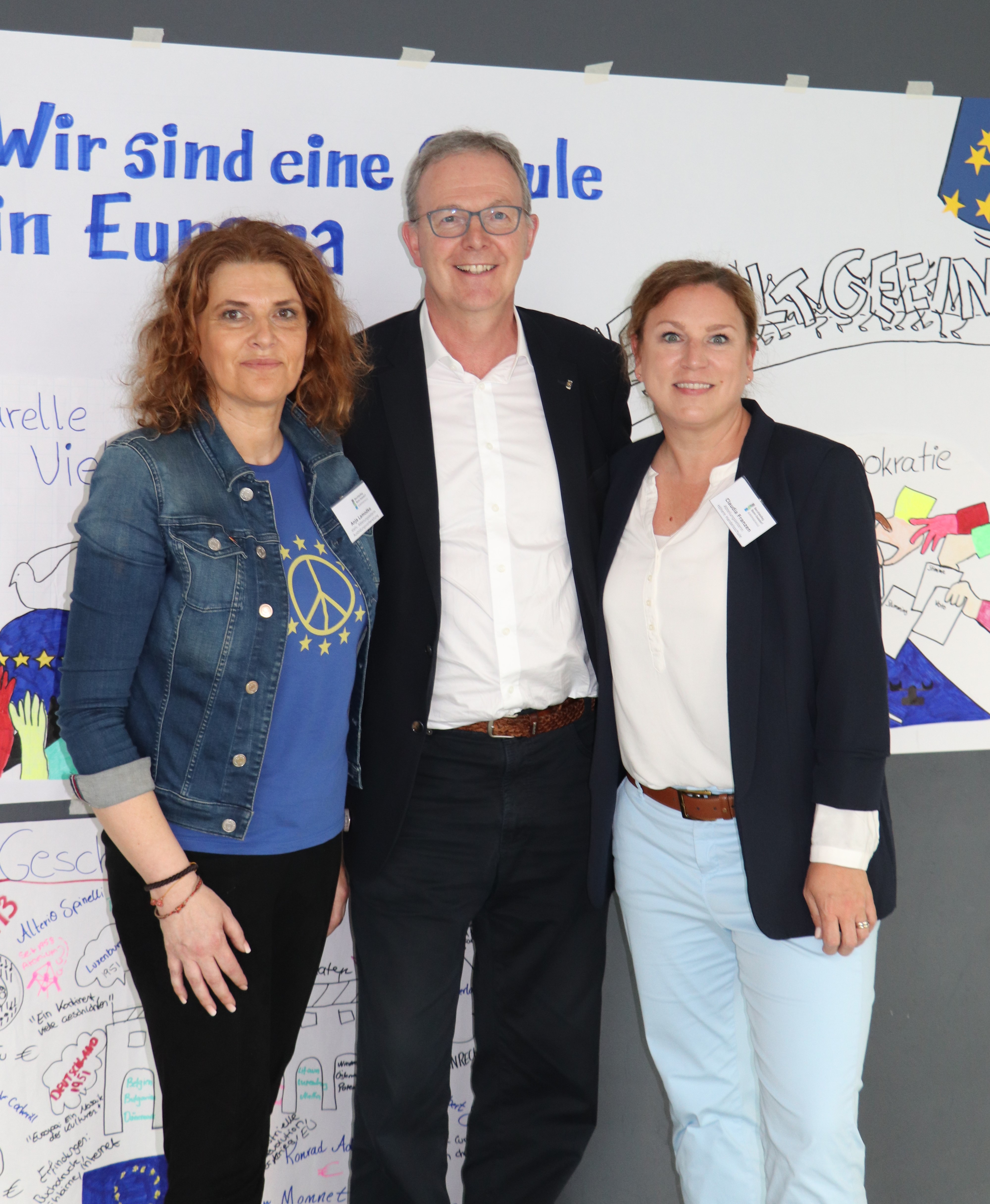 Als Gäste des Europatags nahmen unter anderem die Europa-Abgeordneten Axel Voss und Alexandra Geese teil sowie Iryna Schum, Generalkonsulin der Ukraine, Stefan Lock, Leiter der Regionalvertretung der Europäischen Kommission in Bonn und Vertreterinnen und Vertreter, die sich für Europa engagieren.